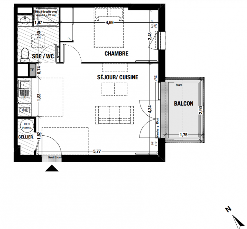 Un placard aménagé pour les T2, deux placards aménagés pour les T3.