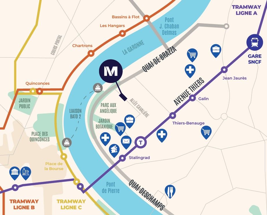Nouvelle résidence dans le Quartier Armagnac Sud, située au pied de l'arrêt de tram "Carle Vernet", lignes C et D. Proche du Jardin de l'Ars et du pont Simone Veil, à 5min de la Gare St Jean...
