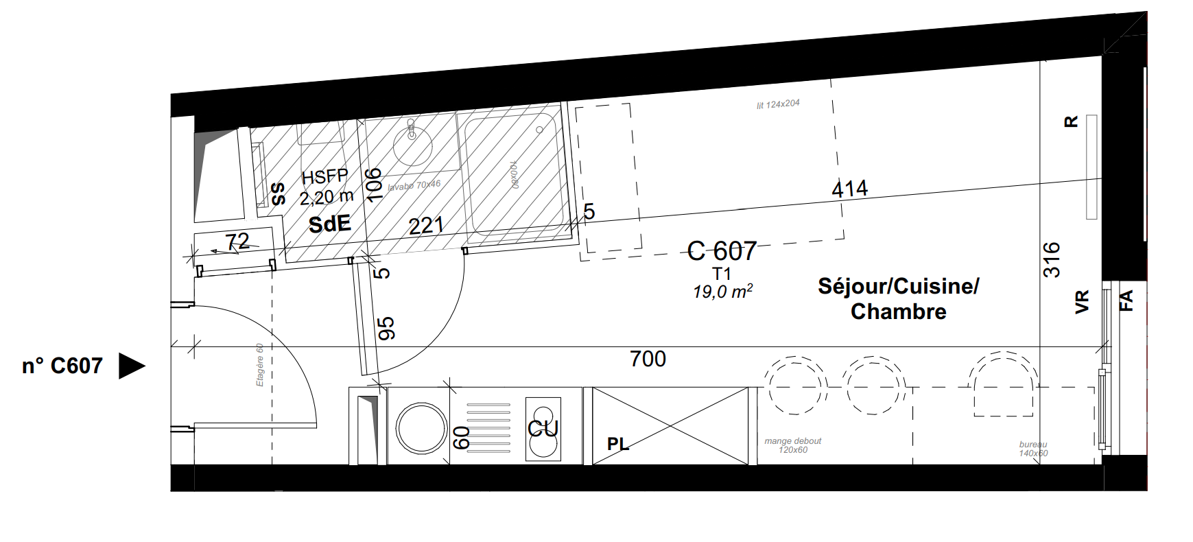 | Voir | Disponible | 156 400€ | C707 | Appt. | Studio | 18.7m2 | 7ème | Disponible | 156 400€ | Voir |
