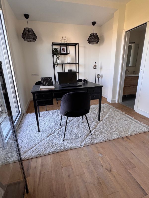 Parquet chêne collé dans les pièces de vies et chambres. Carrelage grand format dans les salles d’eau et WC.