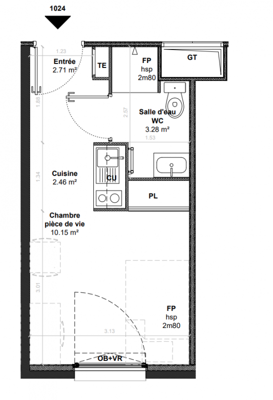 103 099€ Appt. Studio 18m2 0-RDC