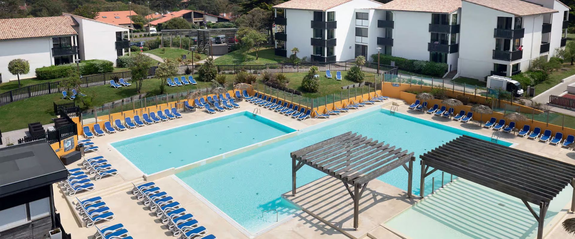 Située à 300 mètres de la plage, la résidence propose des appartements, allant du studio au T2 pouvant accueillir jusqu'à 6 personnes, meublés et équipés. L'établissement prend place dans un espace 100% piéton de 4 hectares et propose également un restaurant avec patio arboré, une terrasse ombragée, des terrains multisports, une salle de fitness et un espace aqualudique chauffé de 600 m² avec solarium, sauna et hammam. L'établissement est idéalement situé à 500 mètres d'un parc aquatique, à moins de 15 minutes en voiture des stations balnéaires de Capbreton et Hossegor, à proximité des réserves naturelles de l'Étang Noir et l'Étang Blanc et à moins d'une heure de la frontière espagnole.