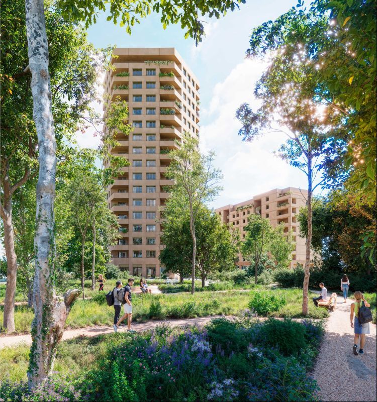 Description de l'opération : Résidence contemporaine ouverte sur un parc urbain paysager d'environ 1 hectare. Architecture élancée avec hauteurs étagées favorisant les vues dégagées et la luminosité naturelle.
