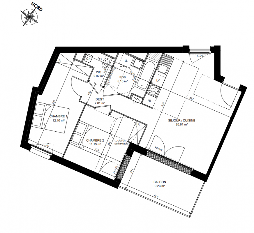 - Appartements 3 pièces : Des volumes de vie confortables allant de 59,50 m² à