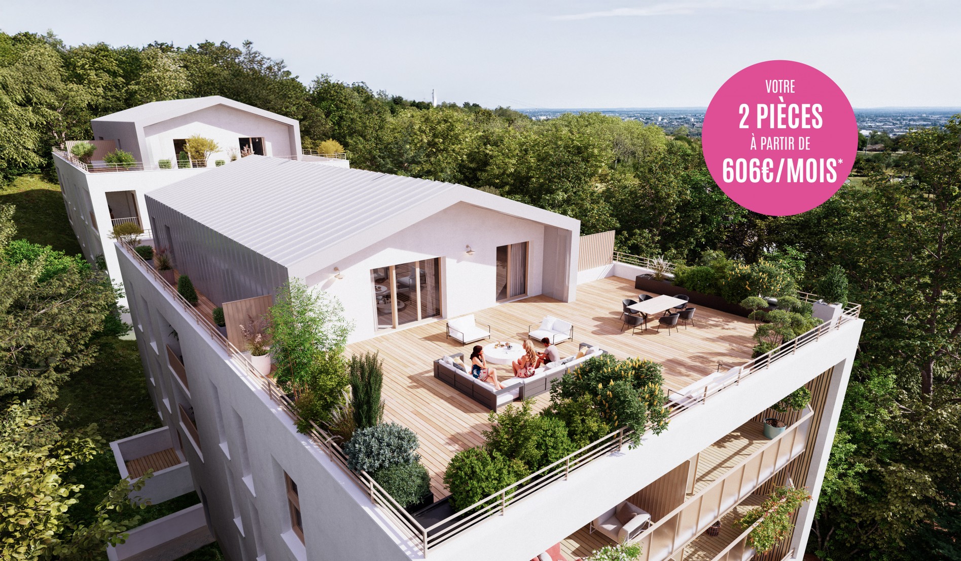 Achetez votre appartement neuf sur les hauteurs de TOULOUSE : un emplacement stratégique, des prestations de standing, un cadre de vie privilégié. Votre 2 pièces à partir de 607 euros par mois. 3 pièces à partir de 785 euros par mois. 4 pièces à partir de 1453 euros par mois. Du 2 au 5 pièces, laissez-vous séduire par nos appartements neufs aux volumes généreux, tous prolongés par une loggia ou une terrasse privative. Pensés pour votre confort, ils offrent des prestations de standing, avec stationnement en sous-sol et local vélo pour faciliter les déplacements quotidiens. Les intérieurs lumineux s_habillent de matériaux nobles et de finitions élégantes. À l_extérieur, les briques et l_enduit blanc se marient harmonieusement à la végétation environnante, tandis que les menuiseries et les toitures en métal gris clair apportent une touche naturelle et contemporaine. Nichée entre Pech David et Pourvourville, la résidence bénéficie d_un cadre résidentiel paisible, sur les hauteurs de Toulouse. Vous y trouverez une atmosphère sereine, à quelques pas de superbes panoramas sur la Garonne depuis le belvédère de Pech-David, lieu emblématique des couchers de soleil toulousains. La proximité immédiate de pôles majeurs comme l_université Paul-Sabatier, les facultés de Médecine et de Pharmacie, le CNES, ainsi que les hôpitaux de Rangueil et de Larrey, confère à cette adresse une dimension stratégique au cœur des enjeux de la santé, de l_éducation et de la recherche. À seulement 380 m à pied de l_arrêt Téléo _ Hôpital Rangueil _, vous accédez facilement à la ligne B du métro via _ Université Paul-Sabatier _, reliant rapidement le centre-ville. Contactez dès maintenant un de nos conseillers pour découvrir nos appartements neufs à Toulouse !