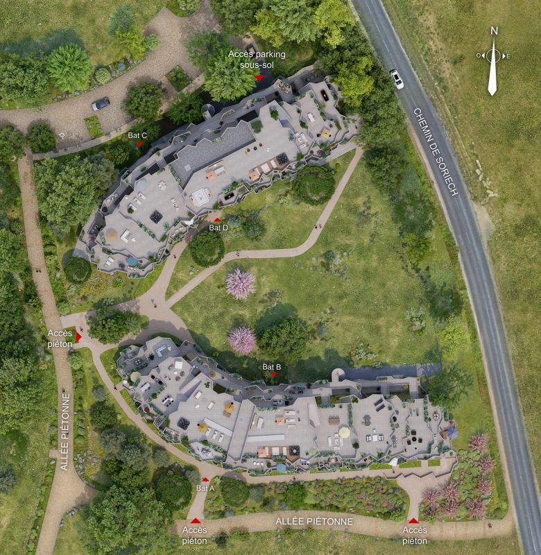 KEROS, en co-promotion avec COGIM, s'élève comme une sculpture minérale, aux façades organiques et texturées, pensées comme façonnées par le temps. Cette création unique accueille 94 appartements du 2 au 5 pièces, tous traversants, baignés de lumière et prolongés de terrasses généreuses ou de toits-terrasses privatifs, avec vues imprenables sur la nature environnante.
