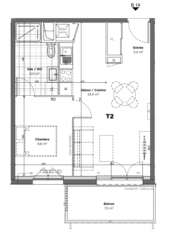 152 000€ Appt. T2 42.5m2 2ème