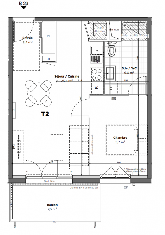 145 000€ Appt. T2 39.2m2 1er