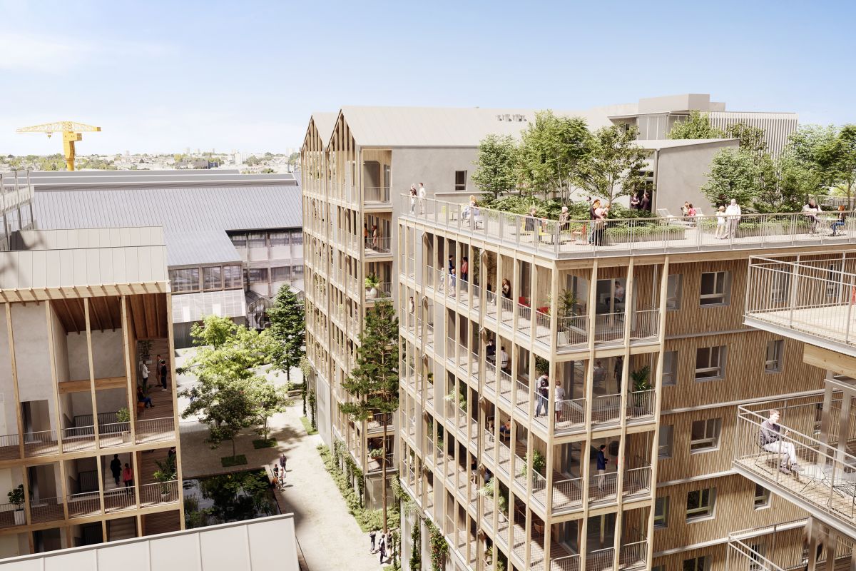 Découvrez prochainement une résidence à part. Située face au Parc des Chantiers et des Nefs de la Loire, au cœur du dynamique quartier de la Création, et à deux pas des Machines de Nantes, Vianova vous propose une résidence d’exception. Par une architecture en bois remarquable avec des passerelle suspendues, mais aussi par des rez de chaussée d’immeuble vivants et végétalisés, Alexandre Chemetoff et ses équipes se sont attachés à créer une qualité de vie d’avant garde.