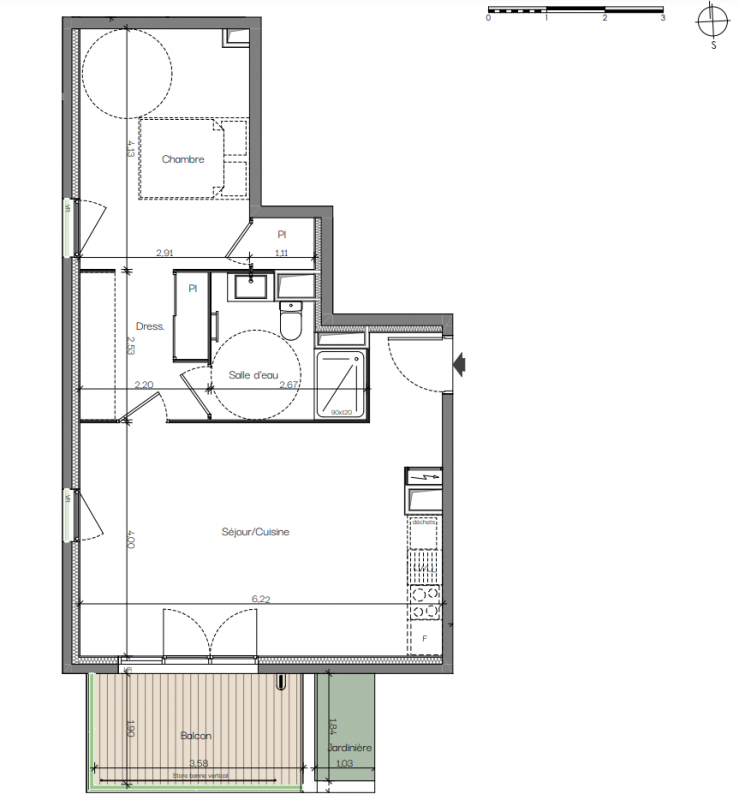 273 000€ Appt. T2 40.5m2 1er