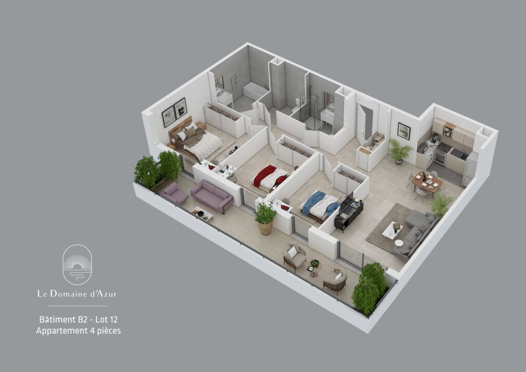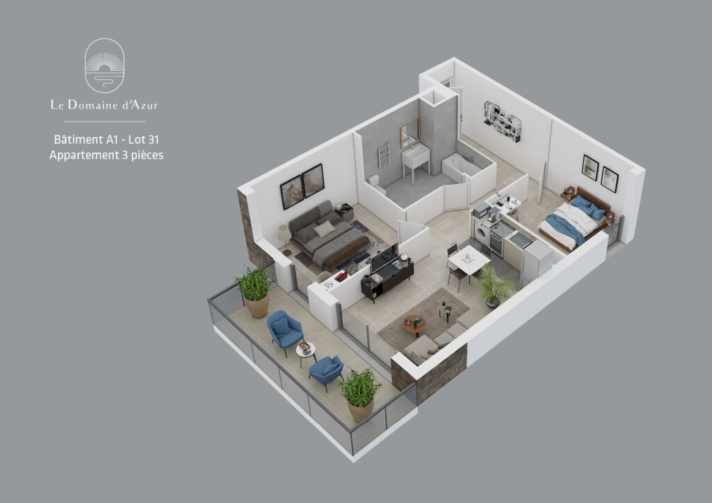 Le programme immobilier neuf "Le Domaine d'Azur" situé dans la région Sud PACA (Alpes-Maritimes) vous offre 17 appartements neufs de type 2 pièces (T2) à partir de 306 800 €, 3 pièces (T3) à partir de 414 400 €.
